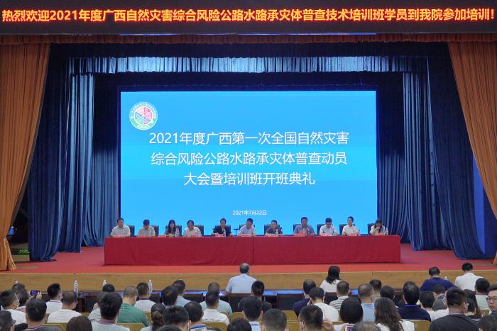 為(wéi)加快推進全國自然災(zāi)害綜合風險普(pǔ)查工作,提高交(jiāo)通係統各部門災害風險普查工(gōng)作人員的(de)專(zhuān)業知識和業務能力,7月22日上午,2021年度廣西第一(yī)次全國自然災害綜(zōng)合風險公路水路承災體培訓班開班典禮在我院大禮堂隆重開(kāi)班。