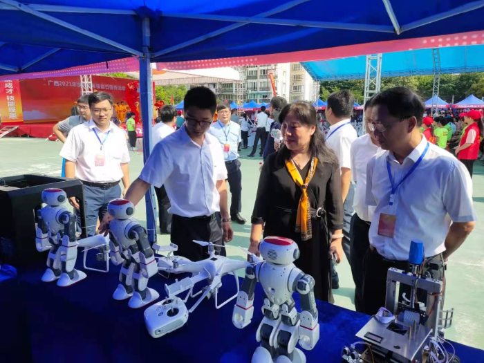 本(běn)次活動以“技能成才、技能(néng)報國”為主題,開展技能展演、技能體(tǐ)驗、免費技能培訓等,活動形式多樣,現場體驗、互動(dòng)性強。全區各技(jì)工院校、企業、技能(néng)大師工作(zuò)室以及職業培訓機構等各類單位,共1000餘人參加(jiā)此次活動。我院(yuàn)積極響應自治區人力資源和社會(huì)保障廳文件(jiàn)精神,由教務與科研科(kē)牽頭,組織汽車工程係、機電工程係、信息工程係和商務服(fú)務係前往桂林技師學院參加展出活動。汽車工程係鈑金噴漆VR仿真模擬(nǐ)項目(mù)、機電工(gōng)程係移動機器人與無人機(jī)項目、信息工程係3D打印(yìn)項目以及商務(wù)服(fú)務係(xì)師生現場聲樂演奏等4個項目,現場(chǎng)反響良好,吸引了大(dà)批觀展領導、嘉賓、師生的目光。