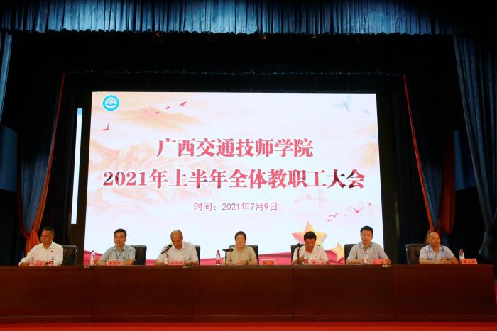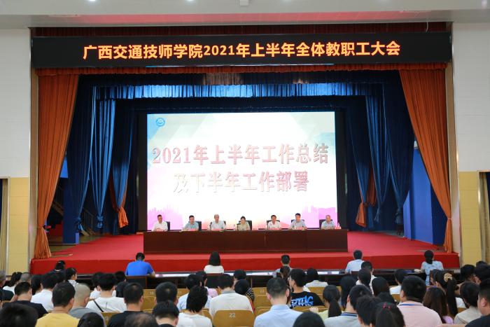 為全(quán)麵總結學院2021年上半年工作,部署落實近段(duàn)時期(qī)學院中心各項工作(zuò)任務,推進學院高質量發展(zhǎn),7月9日,廣西(xī)交通技師學院2021上半(bàn)年全體教(jiāo)職工大(dà)會在學院禮堂召開。學院領導班子出席,全(quán)院400多名教職工參加會議。會議由院長劉芳代表行政班子向大會(huì)作上半年工作總結報告,學院副院(yuàn)長關菲(fēi)明主持會議(yì)。