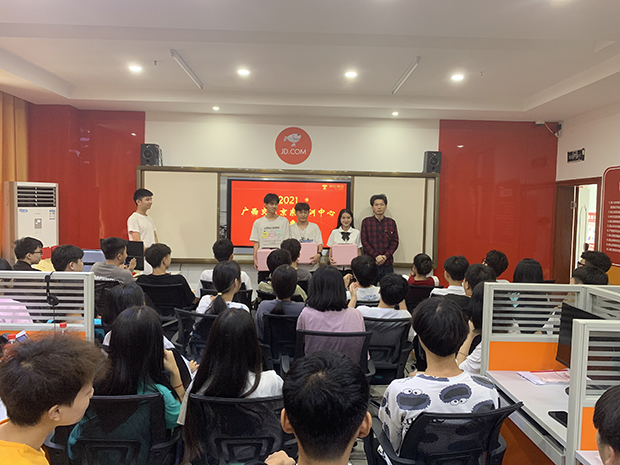 本學期,學(xué)院實訓(xùn)中心在服務客戶的人數排名、實訓中心整體綜合(hé)排名等方麵(miàn)獲得了優異成績,特別是“6.18”期間學院實訓中心成績在全國50多家京東校園實訓中心中排名第一(yī);先後有黃純、韋姿利(lì)、李果、何曉君、莫敏等(děng)15名同學獲得顧客(kè)的好評與表(biǎo)揚;李明明、李果(guǒ)、黃江霖、黃彪陝、黃振晚等5名同學通過企業遴選,獲得參加京東夏令營的機會。