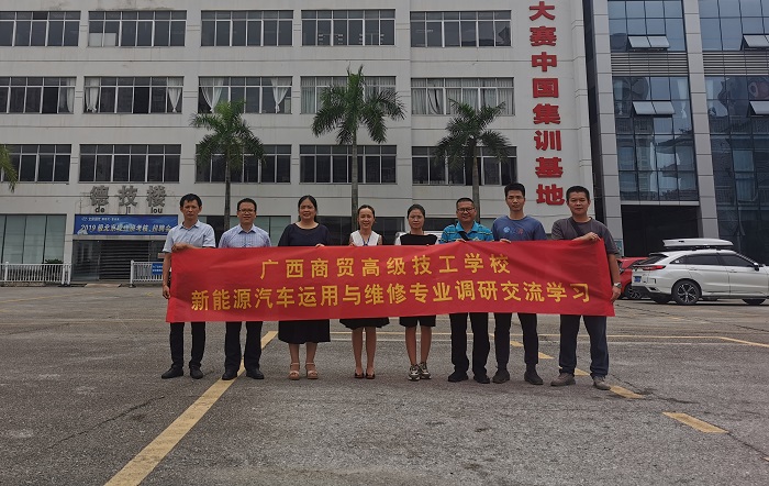6月24日上(shàng)午,廣西(xī)商貿(mào)高級技工學(xué)校教務(wù)科副(fù)科長劉豔飛、汽車工程教研室主任李國君等一行8人,來(lái)我院交流學習。學院教務科副科長黃(huáng)海(hǎi)、汽車係副主任劉小強、技能大師李宣葙及新能源教研組(zǔ)組長秦(qín)浠蓮出席交流活動。