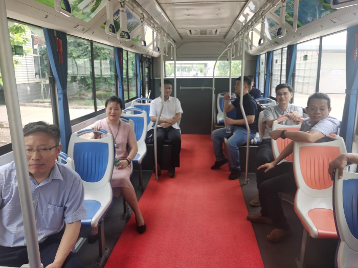 考察組一行試乘項目樣(yàng)品公交客車