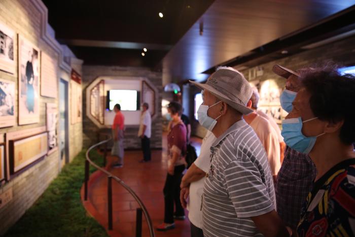 老黨員(yuán)們駐足觀看革命先烈遺(yí)物