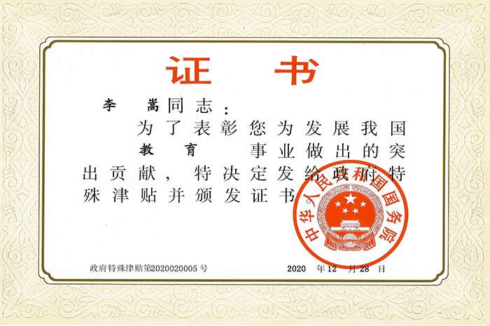 喜訊:我院李嵩老師(shī)獲批享受國務院政府特殊津貼