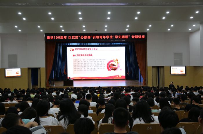 為深(shēn)入學習貫徹習近平新時代中國特(tè)色社會主義思想、習近平總書記(jì)關於(yú)學習黨史的重要論述和習近平總書記視察廣西時的重要講話和(hé)重要批示精神,引導我院學生厚植愛黨、愛國、愛社(shè)會主義的情感(gǎn),激勵(lì)學生學史明理、學史增信(xìn)、學(xué)史崇德、學史力行(háng)。5月13日晚上(shàng),學院黨委書記鍾修仁在邕(yōng)武校(xiào)區禮堂(táng)為全院1000多名學生代表講授《以黨史“必修課”引導青年學生“學史明(míng)理”》黨史學(xué)習教育主題黨課,通過(guò)黨史中一個(gè)個鮮活的故事向學生展現中國(guó)共產黨如何用信(xìn)仰的力量喚起民族自(zì)尊和骨(gǔ)氣,讓中華民族從苦難(nán)走向輝(huī)煌。