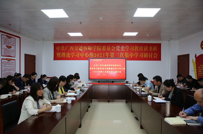中共廣西(xī)交通技師學院委員會黨史學習教育讀書班暨理論學習中心組2021年第三次(cì)集中(zhōng)學習研討會順利(lì)召開