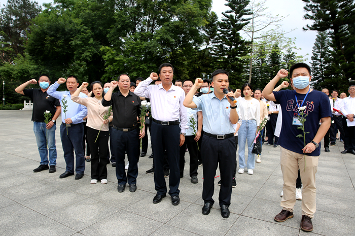 全體(tǐ)黨(dǎng)員(yuán)代(dài)表在革命烈士紀念碑前重溫入黨誓詞