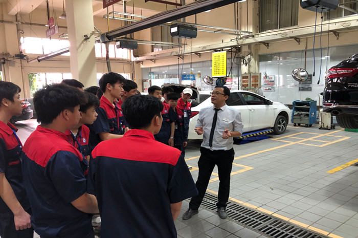 為進一步(bù)了解企業崗位(wèi)人才新需求,探求校企合作新道路(lù),實現精準辦學。2021年3月(yuè)18日學院汽車工程係啟動了本學期的新生參觀(guān)企業項目,學院陳楊、黃丹兩位教師帶領20級汽車維修高級工3班的同學到廣汽豐田廣緣高新店進行參觀學習。