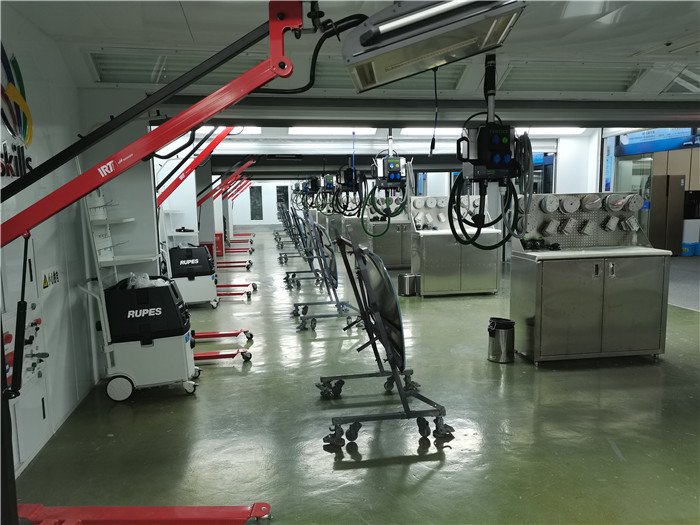 基地的建設得到了國家(jiā)及自治區人社部門的大力支持,先後投入700多萬(wàn)元建設,目前購置了德國費(fèi)斯托無塵幹磨係統、意大(dà)利路貝(bèi)獅移動幹磨係統、德國薩塔噴槍(qiāng)、英國特威噴(pēn)槍、意大利烤燈、寶中寶水性(xìng)漆噴漆房、德國薩塔勞保護具等係列、配(pèi)套的國際先進(jìn)噴塗設備。基(jī)地使用德國巴斯夫(fū)水性漆以及美國龐貝捷水性漆等安全、環保的實訓塗料。環(huán)保(bǎo)無塵(chén)幹磨房、調漆房、環保水性噴漆房、會議室、培訓室等(děng)配套(tào)設施設備,除能滿足學生的日常訓練外,也完全能滿足企(qǐ)業(yè)員工技能提升培訓,技能競賽舉辦及集訓等功能,為貫徹落實習近平總書記關於職業教育的重要講話精(jīng)神,培養高素質技能型人才提供強有(yǒu)力的基礎工程保障。