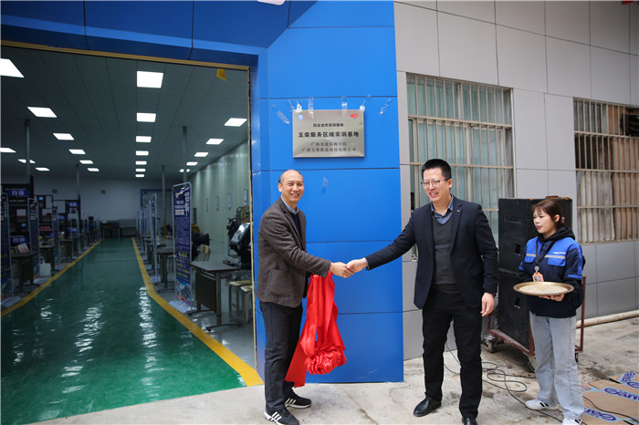 1月6日上(shàng)午,我院隆重(chóng)舉行了國家級商(shāng)用車高技能人才實(shí)訓基地及玉柴服務區域實訓基地的揭牌儀式,並就後續商用(yòng)車(chē)訂單班校(xiào)企合作舉行座談(tán)交(jiāo)流。會後學院與企業召開現場雙選(xuǎn)會,為該訂單班學生就業上崗搭建良好的平(píng)台。自治區人力資源和社會保(bǎo)障廳(tīng)一級調研員李博(bó)、商用車教研室主任張東山、學院院長劉(liú)芳、副院長關菲明、企業領導代表等同誌(zhì)和係部教師代表出席本(běn)次儀式。