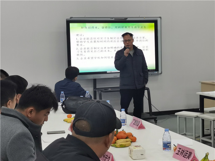 揭牌(pái)儀式結束後(hòu),學(xué)院與企業召開了校企合(hé)作交流會。會(huì)上(shàng),商用車(chē)教研室主任張東山向到場的企業領導介紹(shào)了商用車基(jī)地建設情況、班級創辦情(qíng)況(kuàng)、師資(zī)力(lì)量等,提出:人才的培養(yǎng)需(xū)要學校、企業及各屆人士(shì)的共同(tóng)努力,共同承(chéng)擔社會責任,希望企業能為畢業生積(jī)極提供(gòng)良好就業(yè)環境,同時希望學院(yuàn)與企業加強合作交流,根據(jù)企業用人需求製定人才培養計劃,實現人才“招得來,用得上,留得住”的良性循環。企業領導代表就校(xiào)企合作發言(yán):一是對學院商用(yòng)車(chē)基地的建設和人才培(péi)養輸送表示感謝;二是介紹學院畢業生到崗就業的具(jù)體情(qíng)況;三是表示(shì)將摒棄舊思想,改進(jìn)企業製度、工作環境、人文環境等,爭取暢(chàng)通人才選用渠道,實現人才“招得來,用得(dé)上,留得住”的良性循(xún)環。