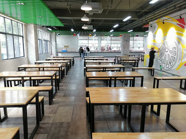 學校食堂采用與餐飲公司合作經營管理模式。現有的學生食堂麵積2100平方米,免費提供消毒(dú)餐盤就餐,可同時容納(nà)800人就餐。食堂內燈光明亮,環境優(yōu)美,配置有空調、電風扇等設施。學生在食堂商鋪就餐購(gòu)物均可使用微(wēi)信、支付寶和一卡通,方便快(kuài)捷。