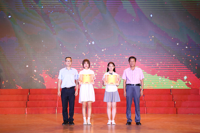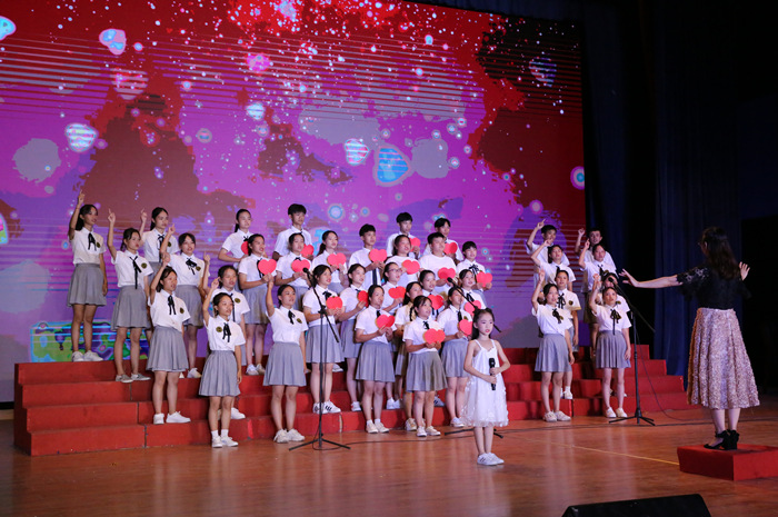 合唱比賽獲獎班(bān)級上台領獎(jiǎng)