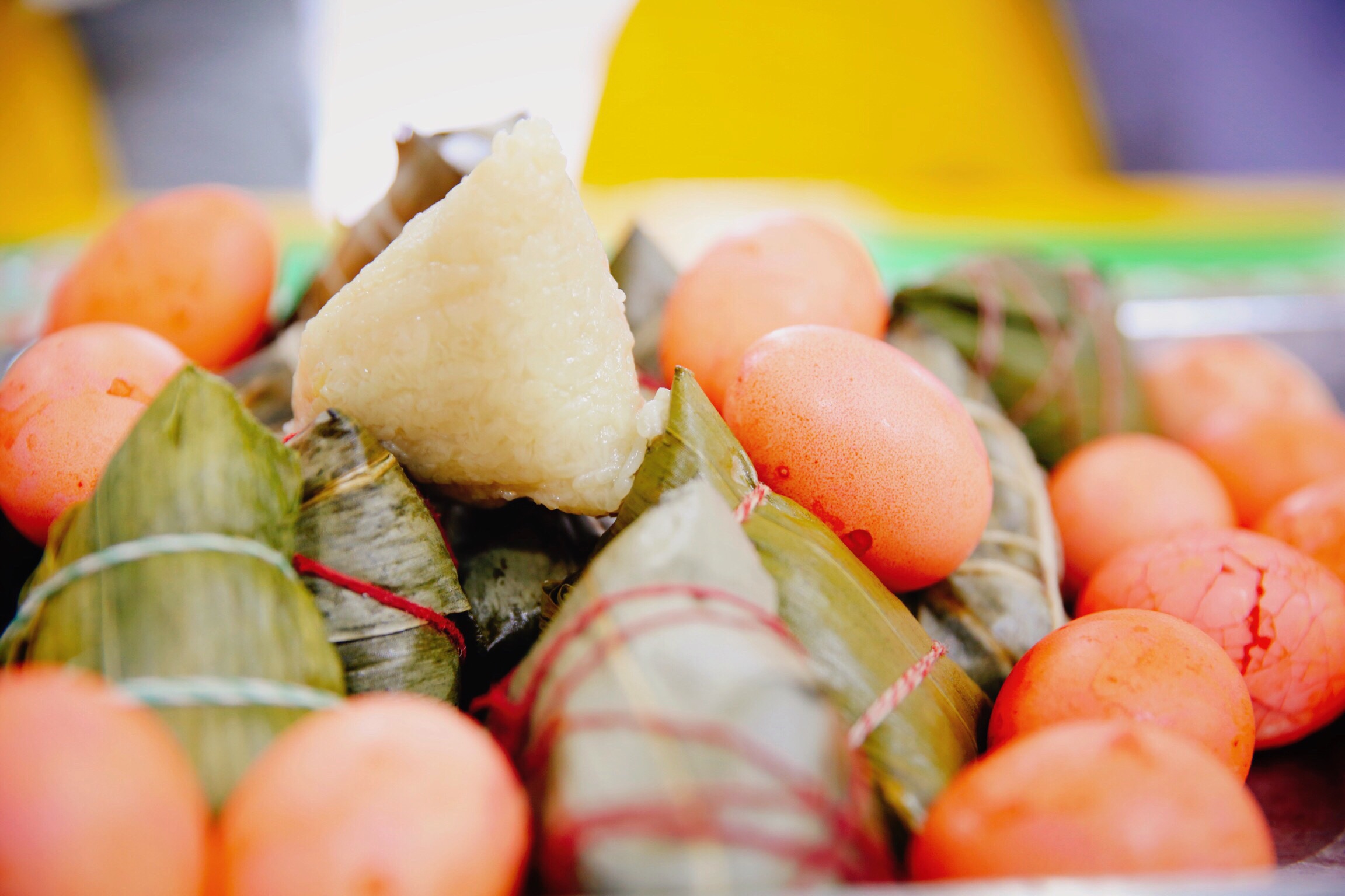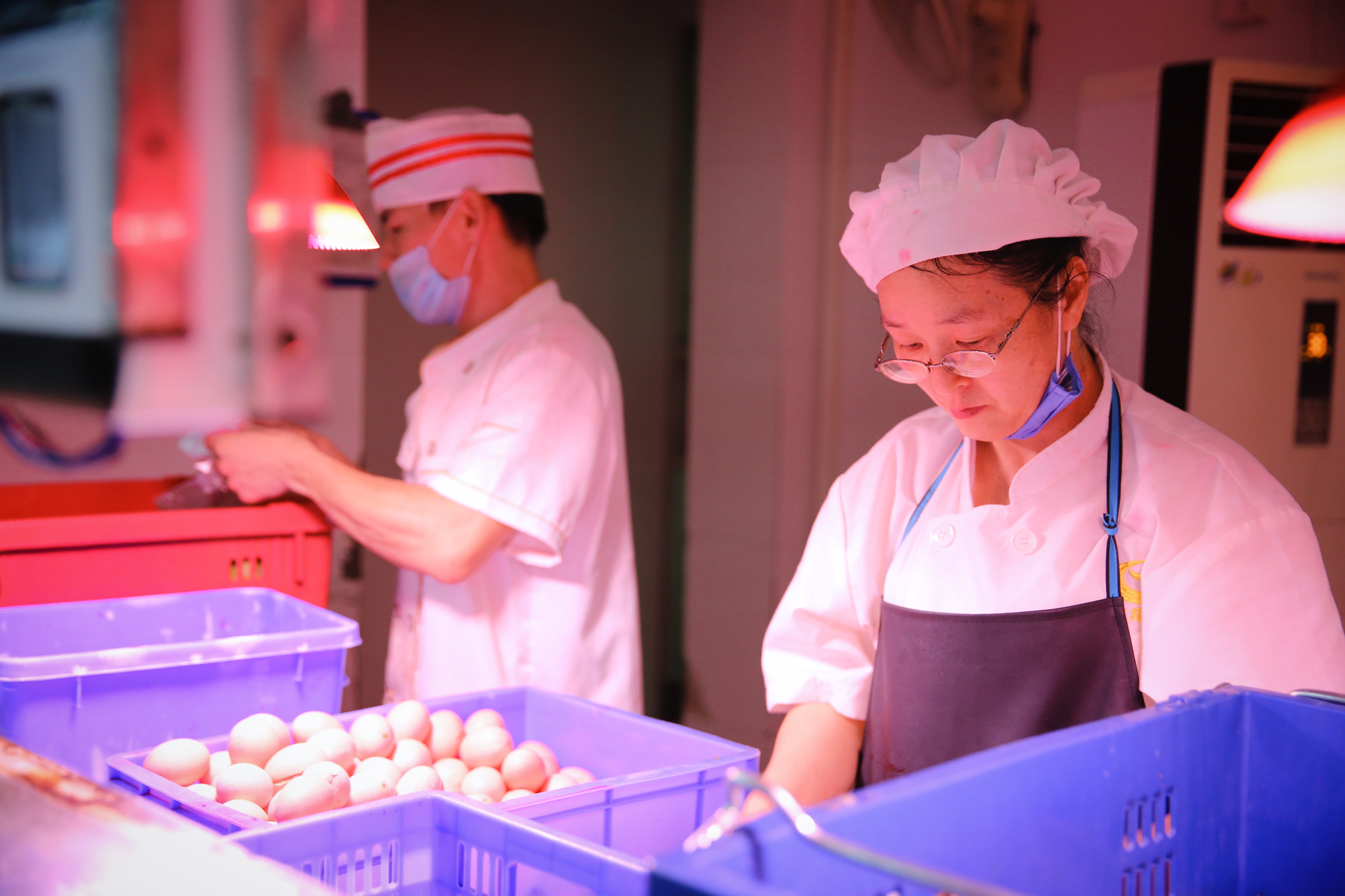 食堂阿姨(yí)正在為同學們準備暖心粽子、雞蛋
