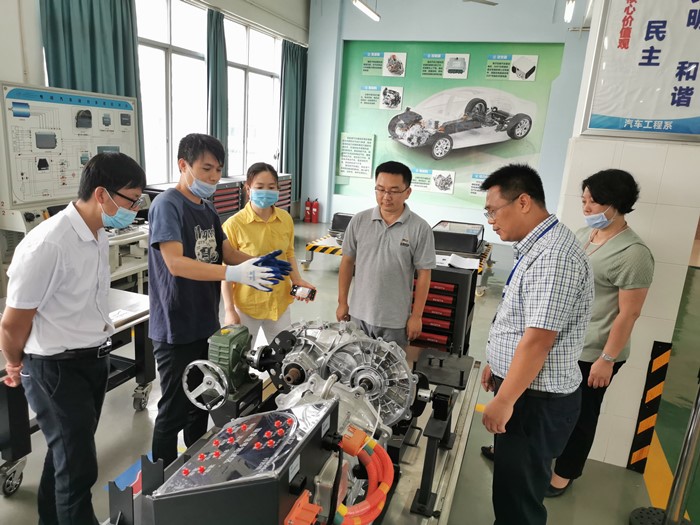 為了更新汽車維修專業教師專業新能源汽車技術知識,提(tí)升教學能力,衝刺(cì)“2020年(nián)全國(guó)新能源汽車技術大賽”。汽車(chē)工程係組織開展新(xīn)能源汽車項(xiàng)目教師培訓。35名中(zhōng)青(qīng)年(nián)教師立足實際操作,結合新能(néng)源汽車專業技術知識,根據新能源汽車(chē)技能大賽(sài)技術標準,圍繞整車排故、驅動電機係(xì)統的拆裝與檢測、電(diàn)池及管理(lǐ)係(xì)統(tǒng)的拆(chāi)裝及檢測等內容(róng),開展為期2個月的學習交流活動。