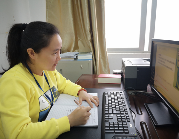 教(jiāo)務(wù)與科研科蒙晰琳老師認真做學習筆記