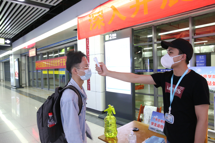 以主(zhǔ)動應對複工複產複學新形勢的姿態,學院始終把學子的健康安全放在一切工作的首位,精(jīng)準施策、強化責任,為確保學生安全返校,避免返校途中過多疫情接觸,420日我(wǒ)院在南寧市琅東客運(yùn)站、江南客運站、安吉客運站、南寧東站等7個車站設置(zhì)接駁點,接送學生返校,勢必為同學們健康、有序開學提供最(zuì)堅實的保障。