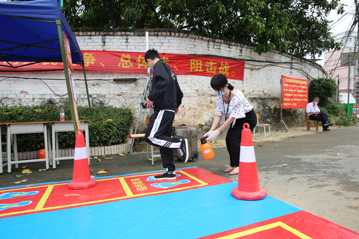 對(duì)返校學生進行全麵消毒並掃碼進入(rù)校園