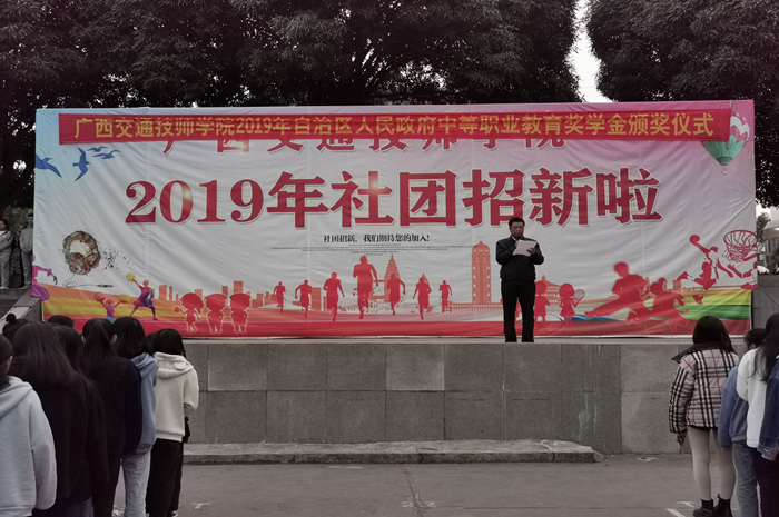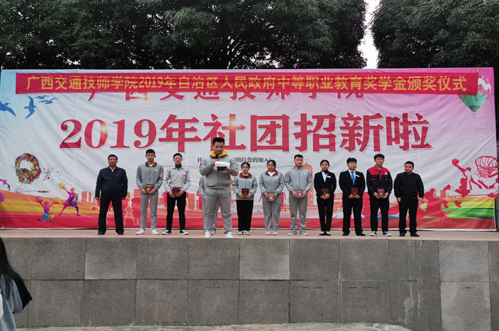 2019年12月9日上午, 我院2019年度自治區人民政府教育獎學金頒獎儀式在燈光球場隆重舉行。學院(yuàn)院長(zhǎng)鍾修(xiū)仁、院長助理謝毅鬆、各(gè)班主任及在校班級全體學生參加頒(bān)獎儀式,儀式由學生工作(zuò)科科長梁勇主持。本年度我院共有126名學生榮獲自治(zhì)區人民政府教育獎學金,獎(jiǎng)金每人2000元,共計25.2萬元人民幣。