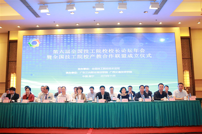 11月2日,第六屆全國技工院校校長論(lùn)壇年會暨(jì)全國技工院校產教合作聯盟成立儀式在(zài)廣西(xī)壯族自治區南寧市舉行。本次活動由全國技工院校校長論壇主辦,我院和廣東三向職業培訓學院聯合承辦。十二屆全國人大外事委員會(huì)副主任委員、人力資源和社會保障部(bù)原副部(bù)長、中(zhōng)國(guó)繼續工(gōng)程教育協會理事(shì)長王曉(xiǎo)初,人社部職業能(néng)力建設司副司長王曉(xiǎo)君,人社部國際合作司副司長錢(qián)曉燕(yàn),廣西壯族自治區人力資源和社會保障廳副廳長蔣劼,廣西壯族自治區交通(tōng)運輸廳副廳長韋勇球,馬來西亞教育部職教司首席助理司長蘇萊米等(děng)領導嘉賓出席(xí)開幕式。共有來自全國30餘個(gè)省、直轄市、自治區的250餘(yú)家(jiā)技工院校、行業協會、企(qǐ)業和技能鑒定機(jī)構近600名負責(zé)人參(cān)加會議。