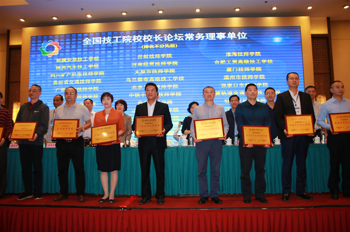 會議期間,大會主持人宣布全國技工院校校長論壇常務理事單位名單。學院鍾修仁院長代表我院領取了(le)大會授予的“全國技工院校校長論壇常務理事單位”牌匾。