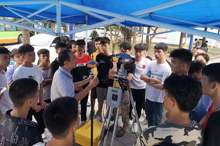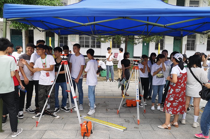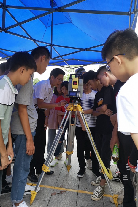 學生參(cān)觀水準儀測量,並由(yóu)18級(jí)學長進行演示