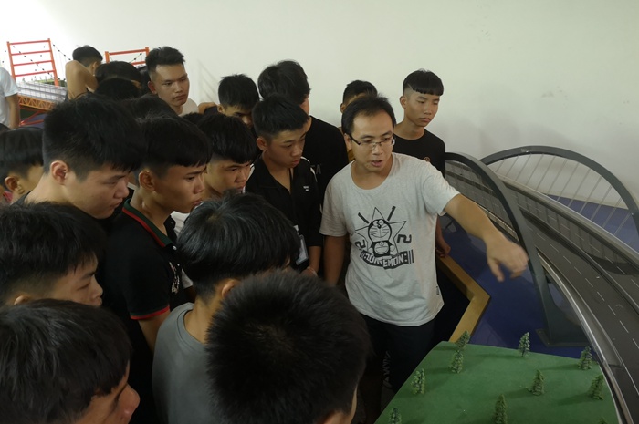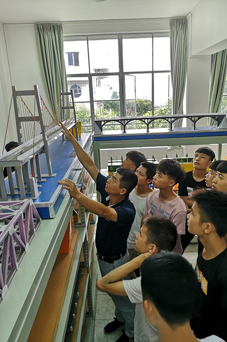 橋梁(liáng)模型室,劉(liú)福海老師現場講解橋梁(liáng)知識