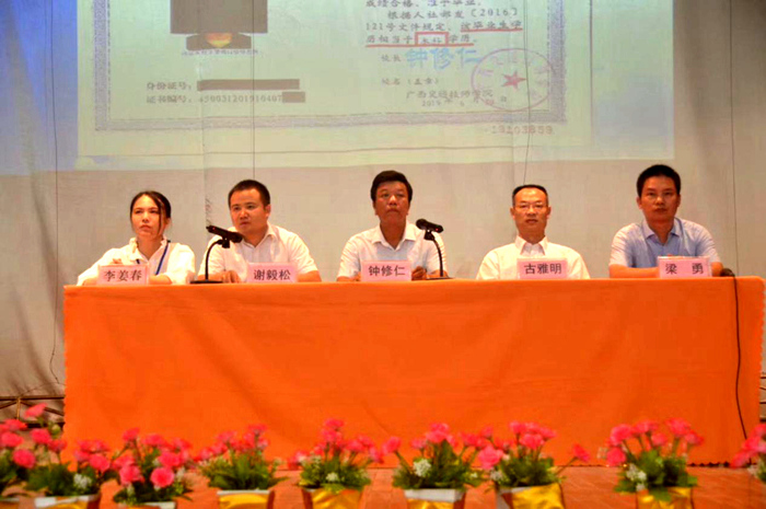 畢業典禮上,院長助理謝毅鬆鼓勵中級工(gōng)學生繼續報讀高(gāo)級工班,高級(jí)工學生繼續報讀預備技師(shī)班,並通過解讀《廣西壯族自治區人(rén)力資源和社會保障廳關於進一步規範事業單位公開招聘崗位條件設置及資格審查有關問題的通知》(桂人社規[2019]8號文)和《關於工程技術領(lǐng)域實現高(gāo)技能人才與工(gōng)程技術人才職業發展貫通的意見(試行)》(人社部發〔2018〕74號文)等(děng)政府相關(guān)文件,闡述了高級工和預備技師在社會上的“含(hán)金量”和待遇優勢等。