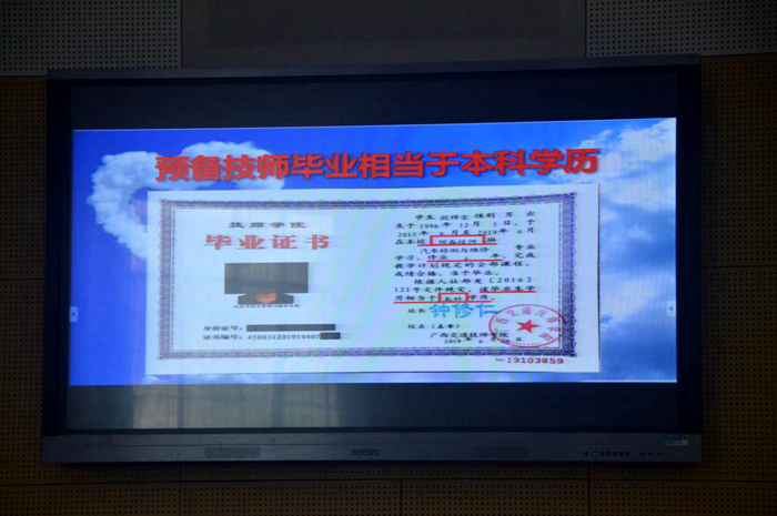向學子們展示(shì)我(wǒ)院第一屆預備技師畢業證