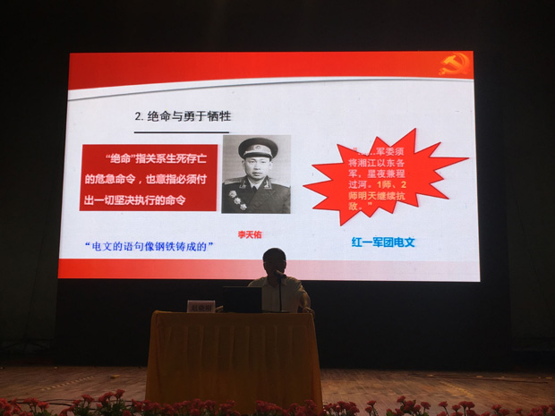 趙曉剛博士通過湘江戰役講(jiǎng)述了紅軍長征的背景、經過及意義,帶領我院全體黨員職工重溫曆史(shǐ),銘記曆史,弘揚和傳(chuán)承紅軍精神和共(gòng)產黨人的曆史擔當,重述中國共產黨人為(wéi)中國人(rén)民謀幸福(fú)、為中華民族謀複興的初心和(hé)使(shǐ)命。