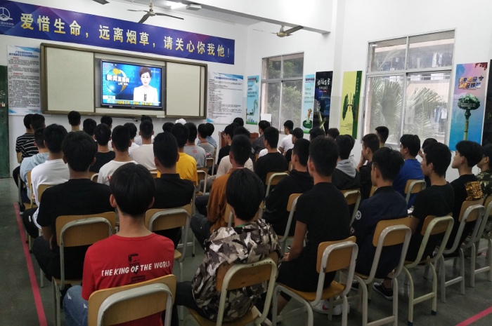 參加禁煙培訓學生認真觀看吸煙有害健康(kāng)係列教育影片