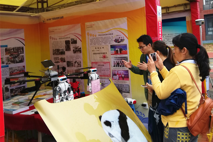 此次活動共設(shè)8個展示區150多個(gè)主題展位,我院派出了汽車工(gōng)程係、交通工程係(xì)、機電(diàn)工程係、商務服務係參(cān)加教育成果展示區和特色(sè)美食小吃展示區,參展物品包括汽車噴繪、公路工程設備,無人機,智能機器人(rén)及我院正式出版12本專業教材。我院專業教師耐心地回答(dá)參觀人員的詢問,詳細介紹我院的專業設置和人才(cái)培(péi)養模式。