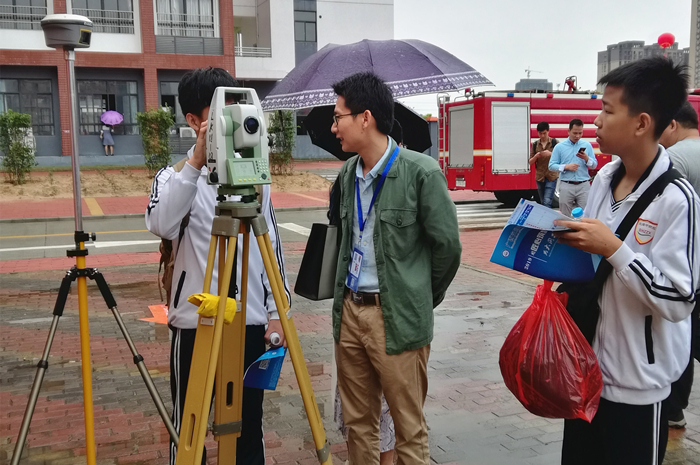 參加活動的學生在體(tǐ)驗我院公路工程設備儀器操作