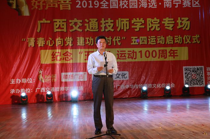 為紀念五四運動100周(zhōu)年,更好地引領廣大青年學生繼承和發揚“五(wǔ)四精神”,5月9日晚,2019《中國好聲(shēng)音》全國校園海選•南寧賽區精品欧美一区二区在线看片技師學院專場決賽——“青春心向(xiàng)黨 建功新時代”五四(sì)運動啟動儀式(shì)在我院邕武校(xiào)區禮堂隆重舉行。
