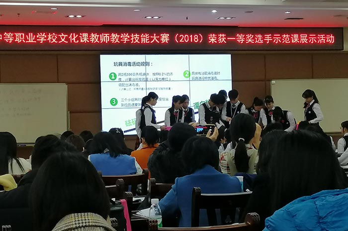 本次活動共有六個學(xué)科、16名選手現場進行示範課展示。每個科目均有2-3名選手進行現場授課。我部門(mén)教師重點觀(guān)摩了德(dé)育、語文、英語等文化基礎類課程。活動中,來自(zì)各大院校的選手教師們根據自身的專業和特長,個性化處理教材,精(jīng)心準備了一堂堂精彩紛呈的示範(fàn)課程。有的課程突出學(xué)生專業性,有的課程突出學生課堂自主探究能力(lì)。課(kè)堂上,學生們津津有味地聽,積極與教師進行(háng)互動,每一節課都彰顯出了活潑有序的課堂氣氛,讓在座的觀摩教師也(yě)能零距離、全方位地感受和學習,並參(cān)與課後提問(wèn)和意見(jiàn)反饋。最後,通過聽取選手的教學反思和專家點評,達到總結經驗、取(qǔ)長補短的效果。