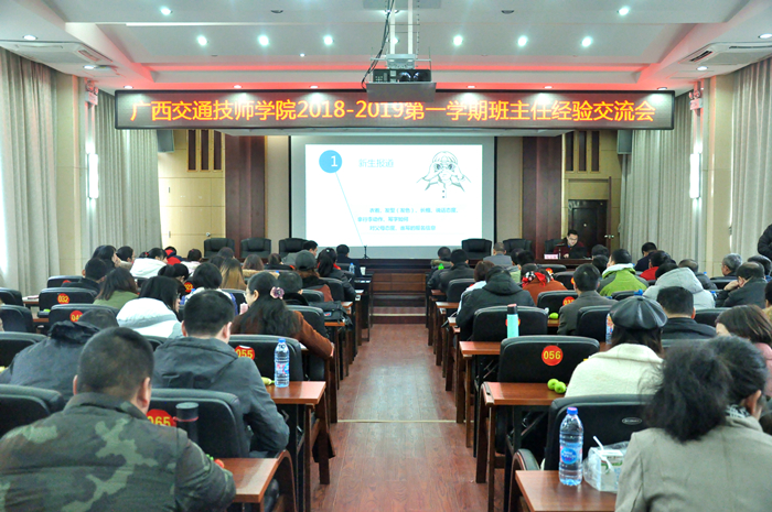 1月12日上(shàng)午,我(wǒ)院在信息中心(xīn)四樓會議室舉行2018—2019學年第一學期班(bān)主任德育經驗交流會。學院院長鍾修仁,院長助理謝毅(yì)鬆(sōng),學生工作科科長梁勇、副科長方華傑,交通工程係副(fù)主任覃甫等出(chū)席,本(běn)學期在校班級、校外實習班級班主任等參加了會議,會議由梁勇科長主持。