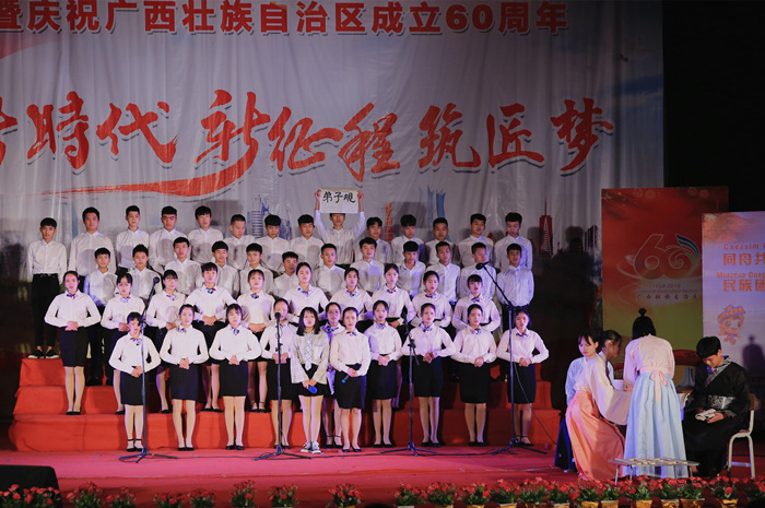 比賽以誦讀為基礎,融合多種舞台表演,展現學生的才藝,給人(rén)以美的享受。參賽(sài)班級各個精神飽滿,感情真摯,生動地展現了《弟子規》的內涵和精(jīng)髓,使現場觀眾(zhòng)深深陶醉在國學經典(diǎn)的獨特魅力之中。值得一提的是,比賽過程(chéng)中各參賽隊伍從入場、隊列、表演、誦讀到退場,各個環節井(jǐng)然有序。同學們通過用聲、用情、用心、用行詮釋了對《弟子規》內涵(hán)的理解,展現了“孝悌”、“謹信”、“愛(ài)眾”、“親仁”等中華民族傳統美(měi)德的恒久魅力和重大的現實(shí)意義。