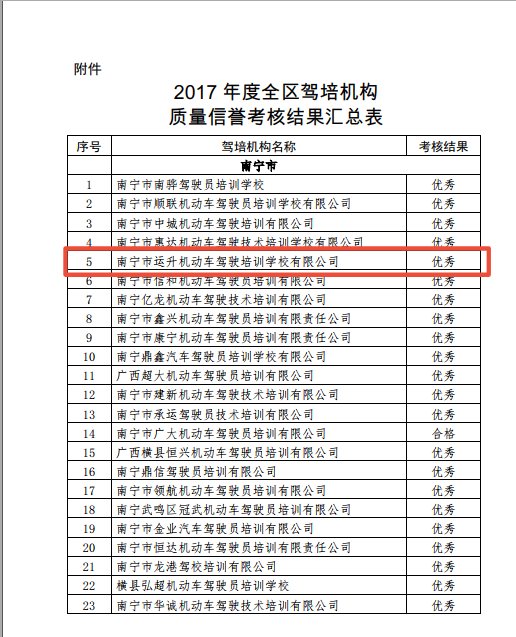 運升駕校(xiào)以優異成績通過2017年度全區機動車駕駛培(péi)訓機構質量信(xìn)譽考核