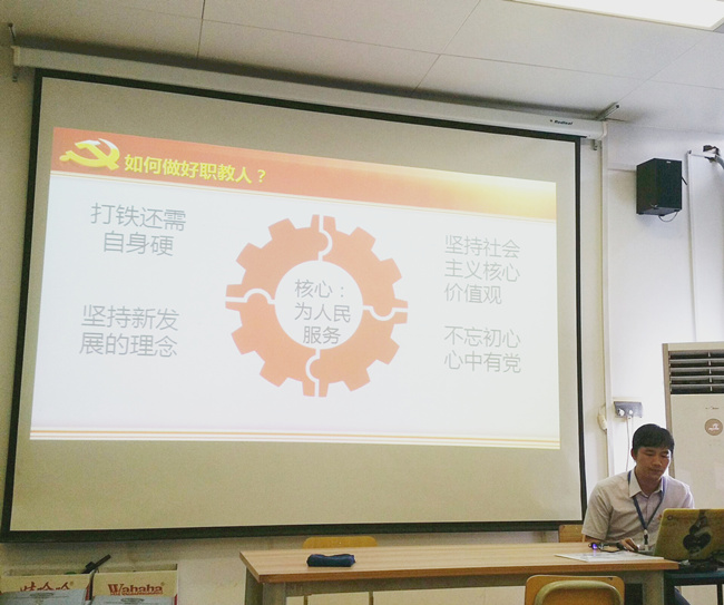 同時,會上黨支部組織委員劉小強同誌(zhì)還給全體黨員上了黨課—不忘(wàng)初心,做好職教人。提出了如何做(zuò)好(hǎo)職教人的問題,並(bìng)指出打鐵還需自身硬,堅持新發展(zhǎn)的理念,堅持社會主義核心價值(zhí)觀,不忘初心心中(zhōng)有黨等指導方法(fǎ),堅持貫徹(chè)習總書記在十九(jiǔ)大報告(gào)中提(tí)出的辦好(hǎo)人民滿意的教育。