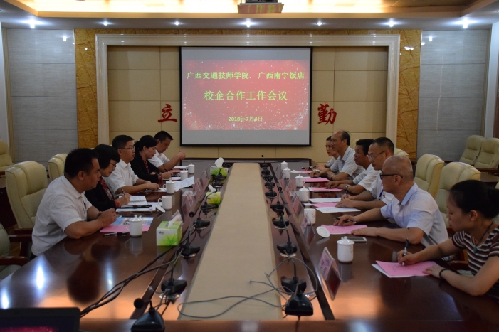 為大力推動學院校企合作有序開展,促進高技(jì)能人才合理就業,滿足企業人力(lì)資源(yuán)提(tí)升(shēng)需求,7月4日下午(wǔ),我院在辦公樓六樓會議室(shì)組織召開校企合作(zuò)工作會議。廣西旅遊發展集團副總經理、南寧飯店黨委書記(jì)、總經理韋貴儒一行五人參加此(cǐ)次會議。院長(zhǎng)鍾修仁、黨委書記古雅明、副院長關菲明及學院(yuàn)相關(guān)部門參加會議。會議由副院長關菲明主持。