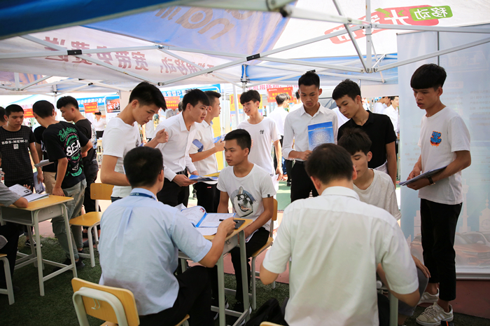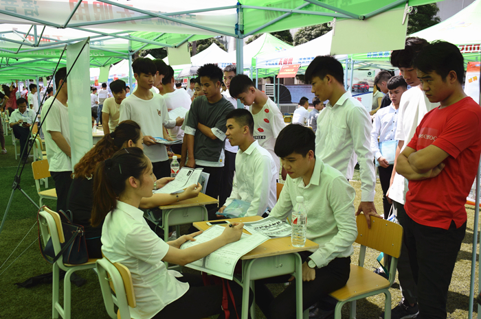 此次共有廣西玉柴機器股份有(yǒu)限公司、深圳市錦保汽車有(yǒu)限公司(深圳南(nán)山(shān)保時捷中心)、廣西钜榮汽(qì)車銷售服務有限公司等區內外近200家企業到校招聘,提供4500多個就業和實習崗位,涉及汽車、營(yíng)銷、工程、電子、物流、酒店服務等職位(wèi)類型(xíng)。應屆畢業生手持精心準備的求職材料,積極(jí)與招聘單位溝通交流,詳細了解用人單位(wèi)的崗位需求情況(kuàng)。