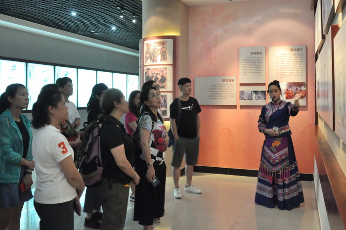 黨員們認真聽講解員講解