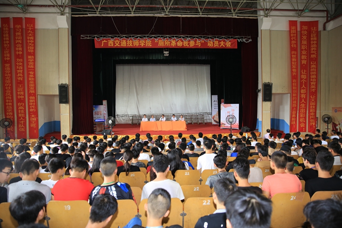 523日(rì)下午,我院在禮堂召開“廁所革命我參與”動員會。學(xué)院院長鍾修仁,學生工作(zuò)科科長梁勇,後勤科科長(zhǎng)陸佳,交通工程係主任伍陽,信息與宣傳中心副主任周林斌等院領(lǐng)導(dǎo)出席活動,1000多名(míng)師生代表到場參加。