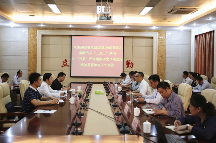 4月3日上午,自治(zhì)區紀委駐自治區交通運輸廳紀檢組組長李勇一行3人,到我院就清明節及“三月三”期間糾“四風”嚴格(gé)落實中央八(bā)項規定精神進行監督檢(jiǎn)查。學(xué)院(yuàn)全體黨委委員和中層幹部參加了會議。