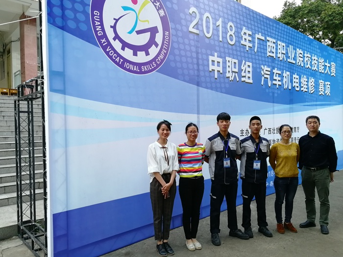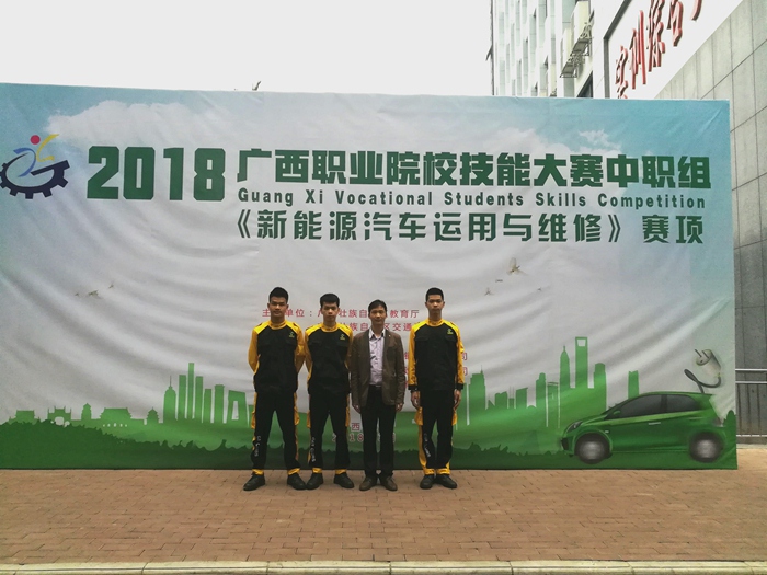 新能(néng)源(yuán)汽車(chē)運用與維修項目於324-25日在廣(guǎng)西交通運輸學校舉行,參加新能源汽車運用與維修項目的共有來(lái)自廣西各個縣市的32支代表(biǎo)隊,我院汽車工程係學生劉瑞利、沙德新、彭荘慶參加了(le)本次比賽。