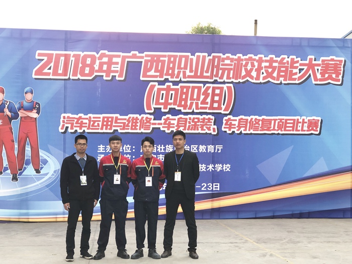 汽車運用與維修專業項(xiàng)目車身塗裝項目(mù)與車身(shēn)修(xiū)複(鈑金)技術項目於(yú)322日至23日在南寧第四職(zhí)業技術學校舉行,本次參加汽車噴漆項目(mù)與車身修複項(xiàng)目的共有來自廣西(xī)各個縣、市的(de) 26個代表隊。我院汽車工程係陳銘、馬明傑同學分別參加了汽車塗裝項目與車身修複項目。