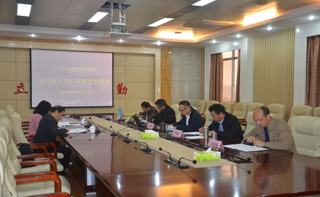 按照上級黨委工作部(bù)署和《中共廣(guǎng)西交通技師(shī)學院委員(yuán)會關於做好2017年度民(mín)主(zhǔ)生活會有關工作的通(tōng)知》文件要求,2018年1月23日,我院在辦公樓(lóu)六樓會議室召開了2017年度民主生活會,自治區道路運輸管理局張小健局長和人事科鍾邱科長蒞臨現場指導,我院黨委書記古雅明,院長鍾(zhōng)修仁,副院長陸天雲、關菲明、蔣斌五位領導班子成員參加了本次會議,會議由院黨委書(shū)記古雅明主持。