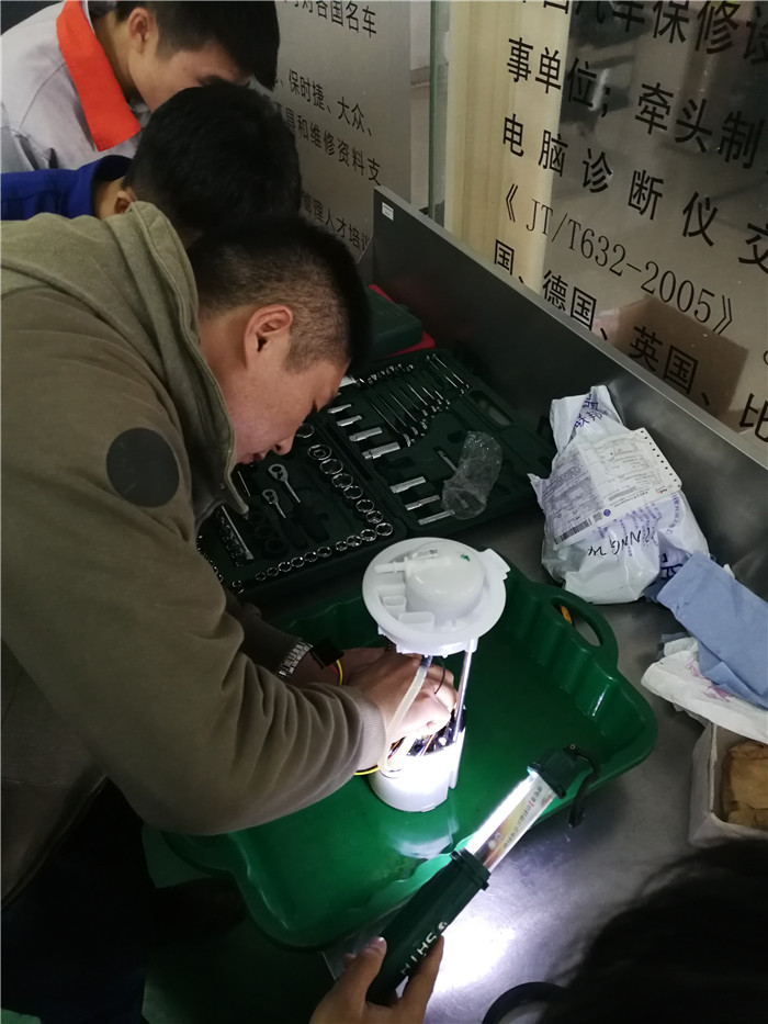 鄭西振(zhèn)老師在示範操(cāo)作汽(qì)油濾清器檢查與更換