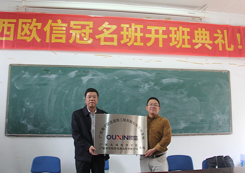 為加強企業與學(xué)院(yuàn)之間的溝通(tōng)、交流,增加學生對企業的了解,2017年11月28日下午,我院在長堽校區辦公樓多媒體教室舉行廣(guǎng)西“歐信”冠名班開班典禮和揭牌儀(yí)式。學院(yuàn)院(yuàn)長鍾修仁、副院長關(guān)飛明,廣西南寧歐信道路工程(chéng)有限公司總經理黃敏、廣(guǎng)西煒盈建(jiàn)築工程有(yǒu)限公司總(zǒng)經理李孝平等(děng)領導出席了典禮和儀式,典禮由機電係主任周茂傑主持。