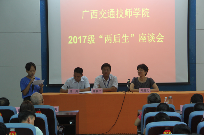 9月15日,我院(yuàn)2017級“兩後生”座(zuò)談會在求知樓階梯教室(shì)召開。會議由學(xué)生工作科科長梁勇主持,院長鍾修仁、院長(zhǎng)助理鄭超文參加會議。